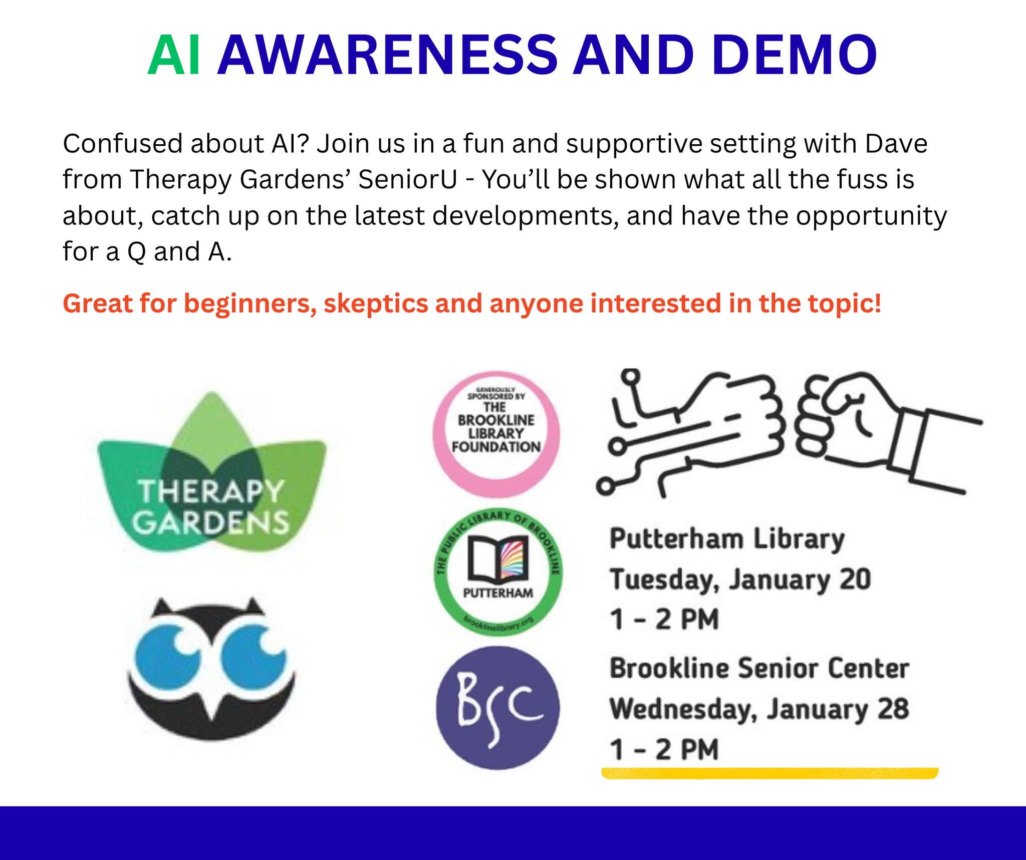 Artificial Intelligence Awareness and Demo (Putterham) - Tuesday, January 20 at 1:00 PM