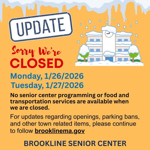 Important! The Town of Brookline has declared a Snow Emergency and Parking Ban starting Sunday, January 25, 2026, at 12 PM (Noon). Regularly scheduled Trash and Recycling pick up for Monday, January 26th will be delayed to Tuesday, January 27th. Trash collection will be delayed by one day for the remainder of the week, with Friday's route collected on Saturday. Click this town link https://www.brooklinema.gov/1276/Snow-Winter to learn more and to stay up to date with town updates regarding the storm.