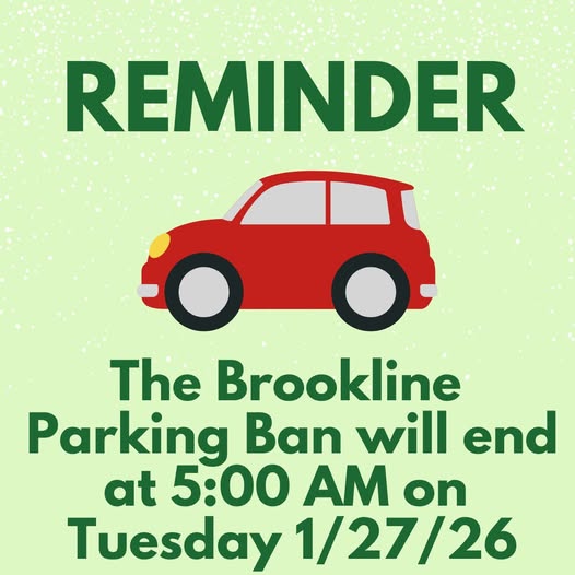 All Town Offices Closed Monday, 1/26 - Parking Ban beginning Sunday, 1/25, starting at 12:00pm (noon) still in effect https://www.brooklinema.gov//CivicAlerts.aspx?AID=2509
