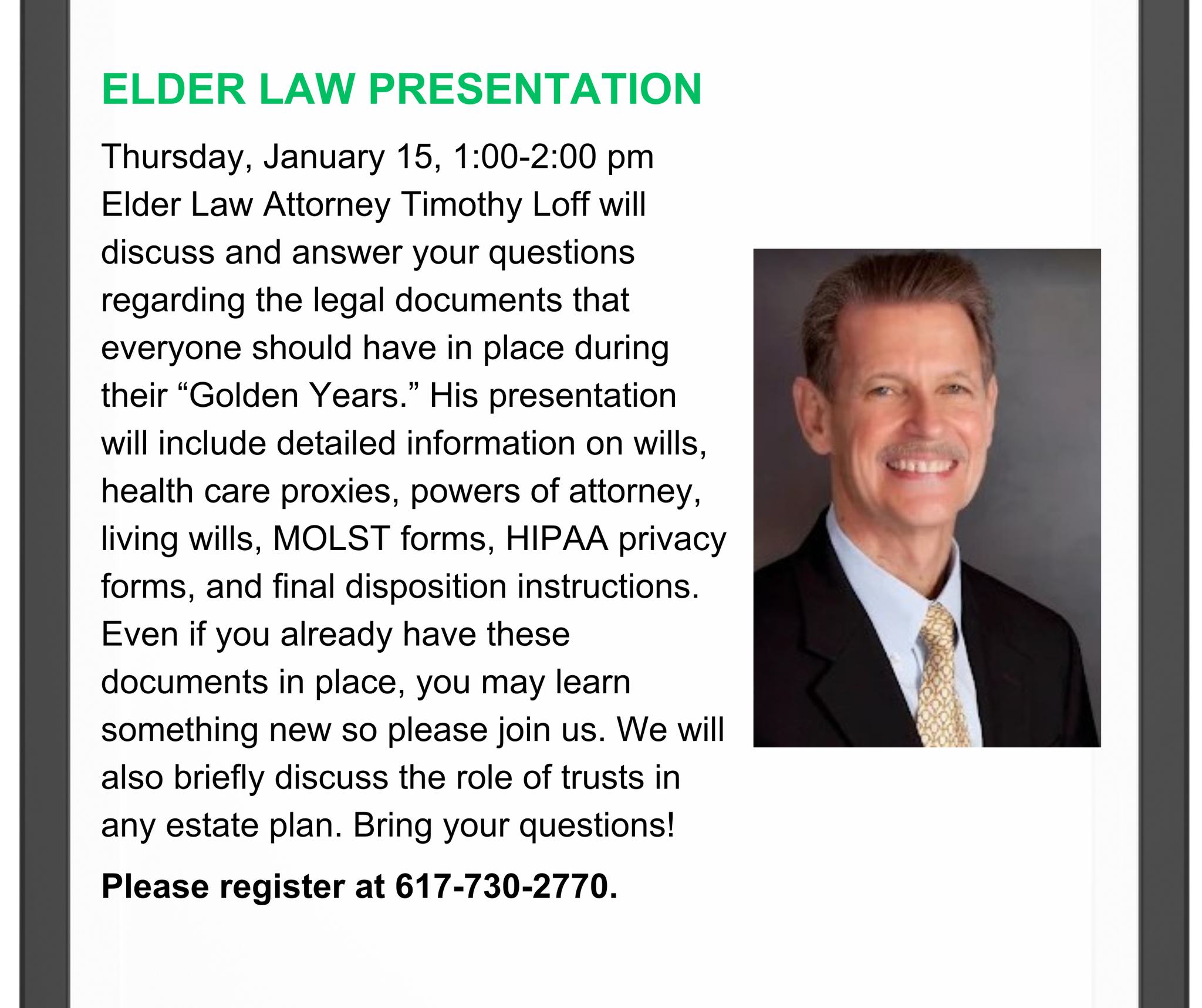 Please register at 617-730-2770.